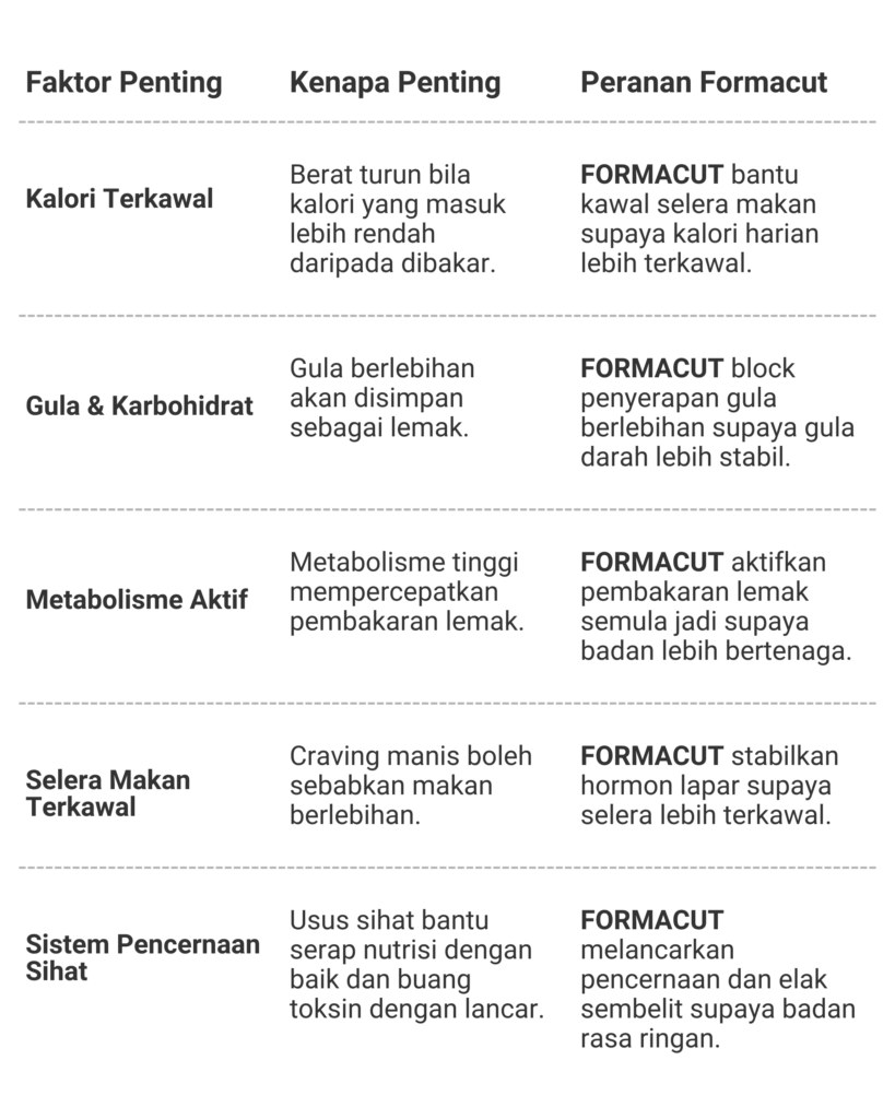 Faktor Penting Untuk Turunkan Berat dan Ini Peranan Formacut®