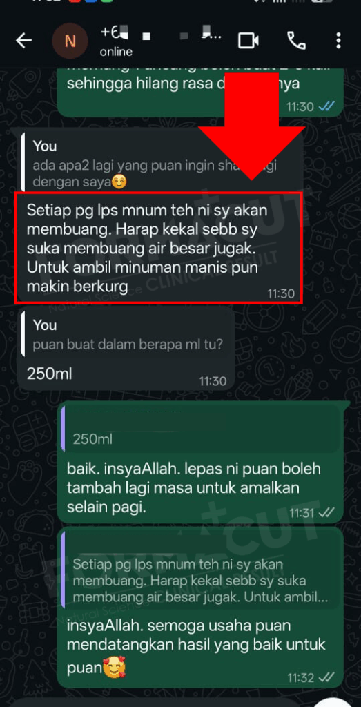 “Berat turun 10kg! Dulu susah tahan nafsu makan, terutama bila nampak makanan manis. Selepas konsisten guna Formacut, craving makin kurang, selera terkawal, dan berat badan turun lebih mudah.” - Pn. Sherry